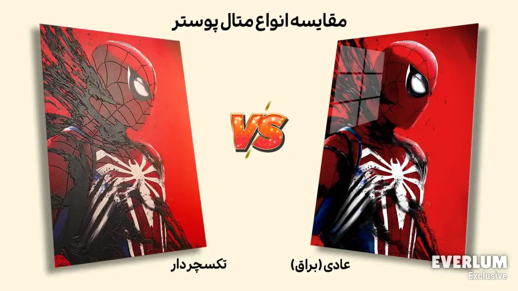 مقایسه متال پوستر عادی (براق) و تکسچردار | بررسی انواع متال پوستر