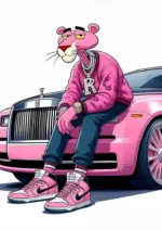 متال پوستر HD انیمیشن پلنگ صورتی برای طرفداران دنیای انیمیشن